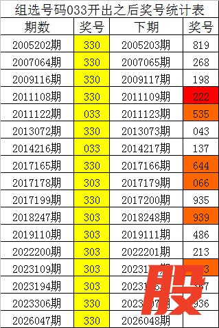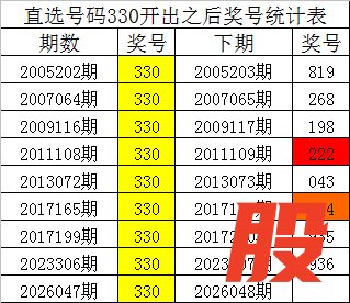 从上表统计可以看出,直选号码330开出之后,其下期奖号: