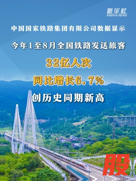 ■1至8月,全国铁路发送旅客32亿人次,同比增长6.7%,创历史同期新高,全国铁路运输安全平稳有序。