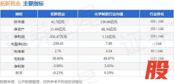 拓新药业2025年一季报显示,公司主营收入9699.47万元,同比下降10.46%;归母净利润-356.47万元,同比下降272.34%;扣非净利润-595.27万元,同比下降828.02%;负债率11.57%,投资收益101.15万元,财务费用-13.88万元,毛利率30.66%。拓新药业(301089)主营业务:核苷(酸)类原料药及医药中间体的研发、生产及销售。