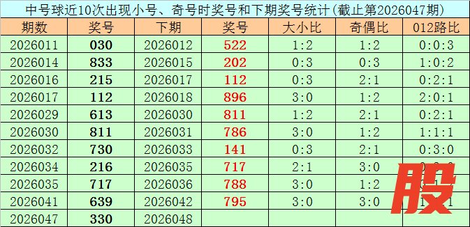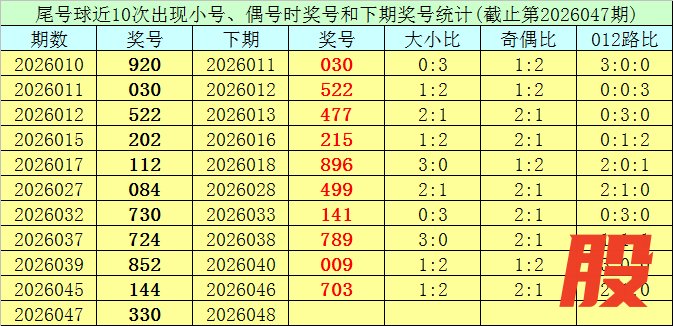 开奖回顾:体彩排列三第2026047期开出奖号330,奖号大小比开出0:3,奇偶比开出2:1,012路比开出3:0:0。