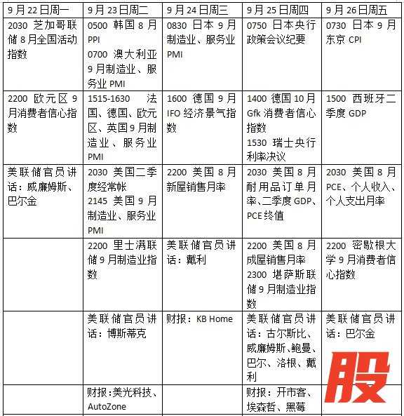 财报方面,未来一周美光科技、好市多和埃森哲等将发布财报。
